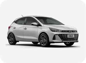 O Hyundai HB20 Hatch é um carro compacto moderno e econômico, com 3,94m de comprimento e 300L de porta-malas. Destaca-se pelo motor 1.0 Flex (80 cv) ou 1.0 Turbo GDI (120 cv), câmbio manual ou automático, e itens de segurança como 6 airbags, controle de estabilidade (ESP) e frenagem automática nas versões superiores.